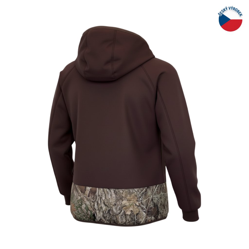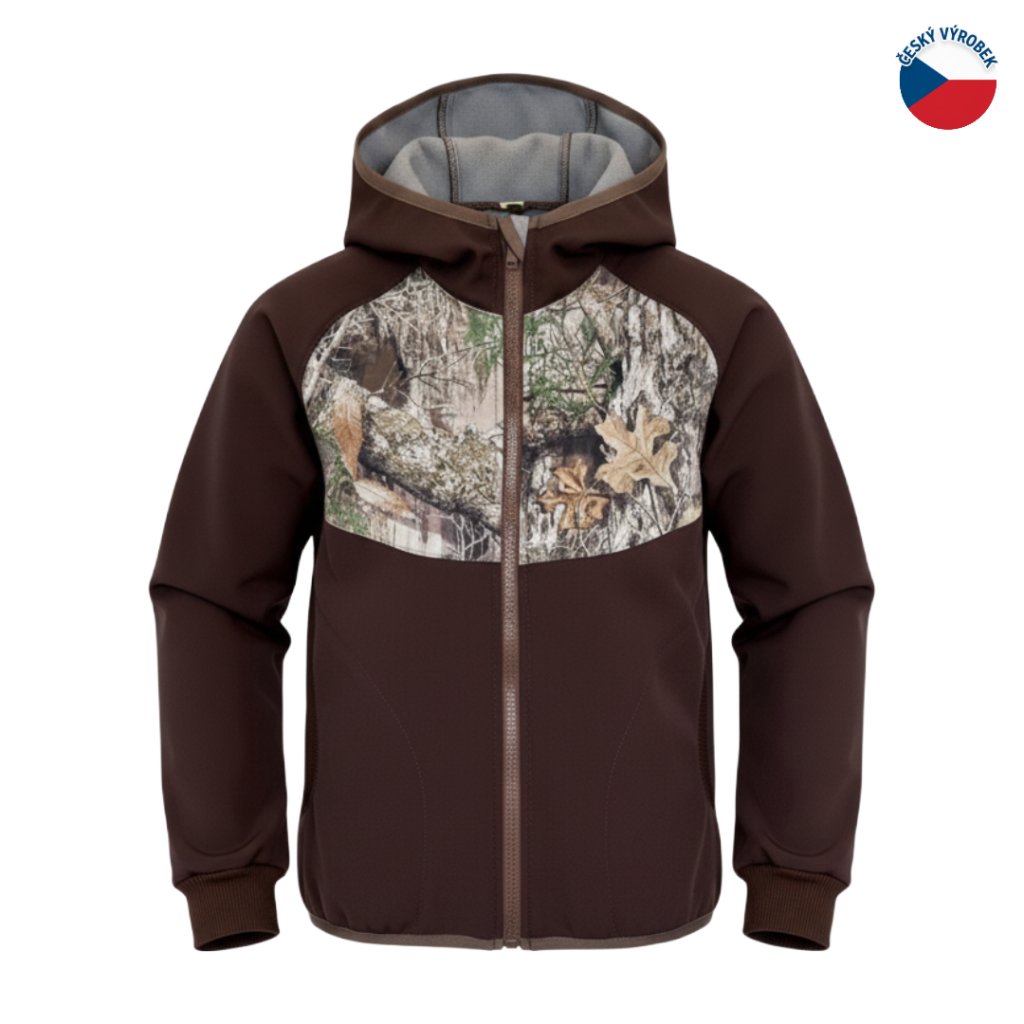 ZÁHOŘÍ Dětská softshellová bunda s kapucí - hnědá s kamufláží