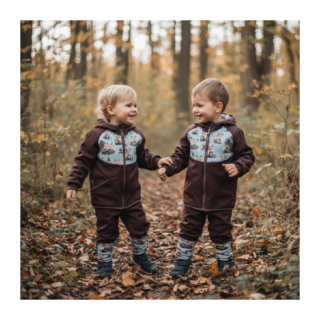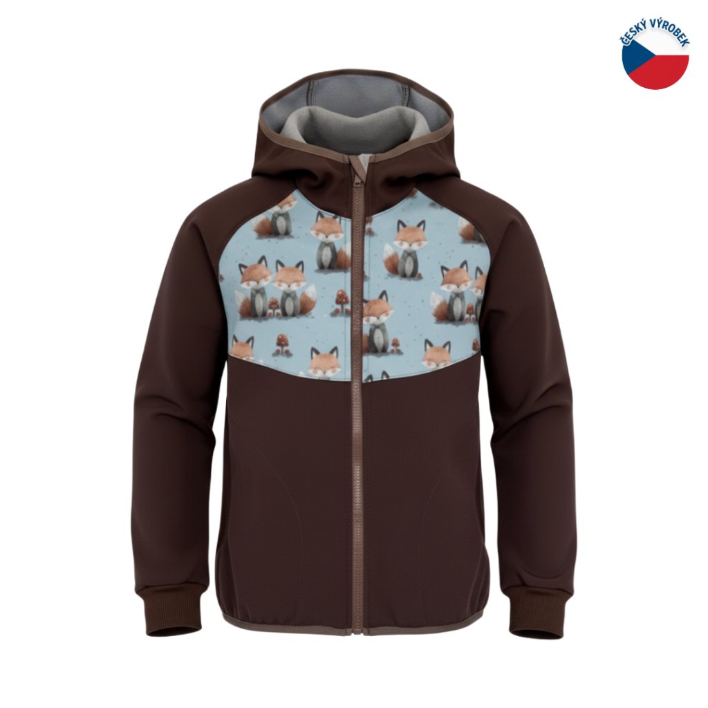 ZÁHOŘÍ Dětská softshellová bunda s kapucí - hnědá s liškami