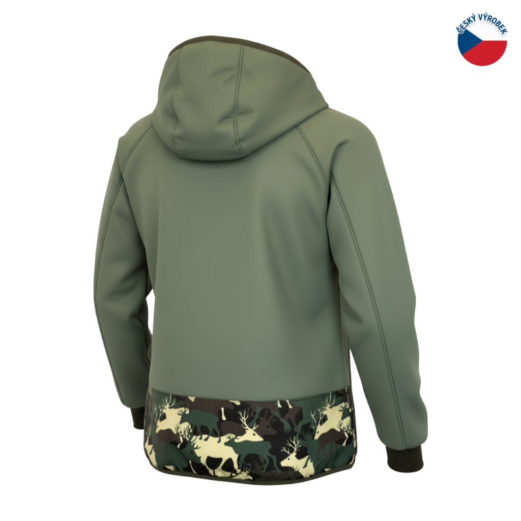 ZÁHOŘÍ Dětská softshellová bunda s kapucí - zelená s jeleny