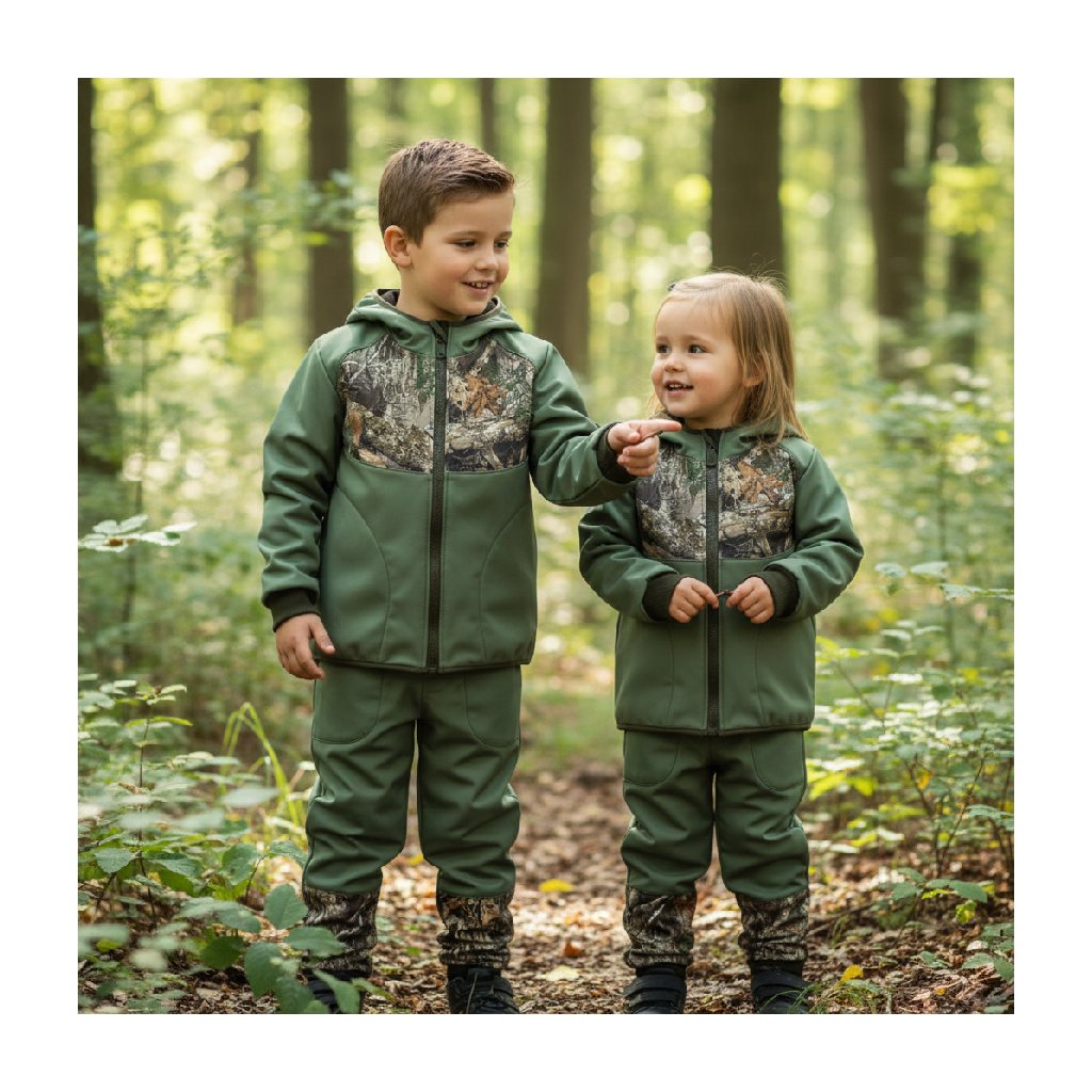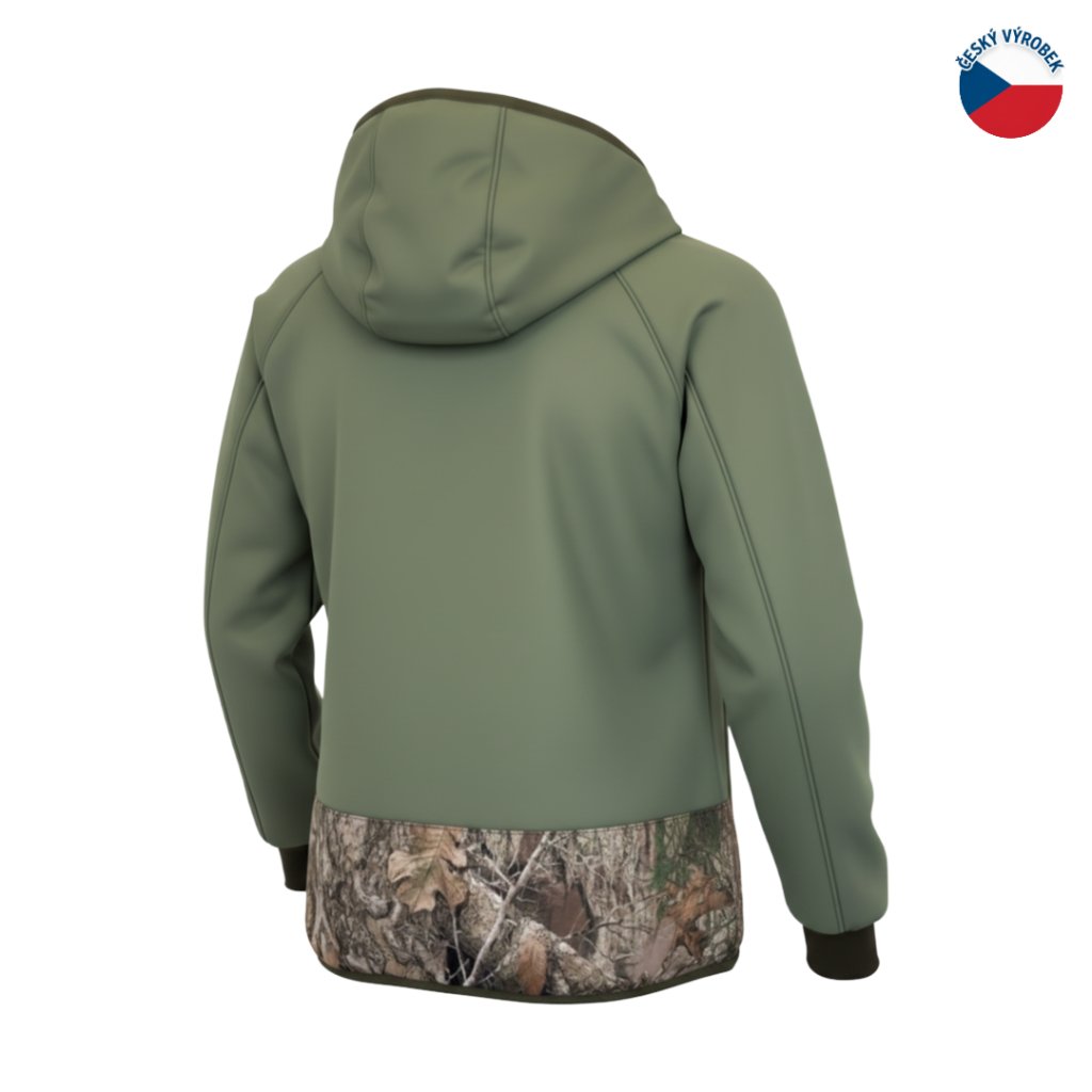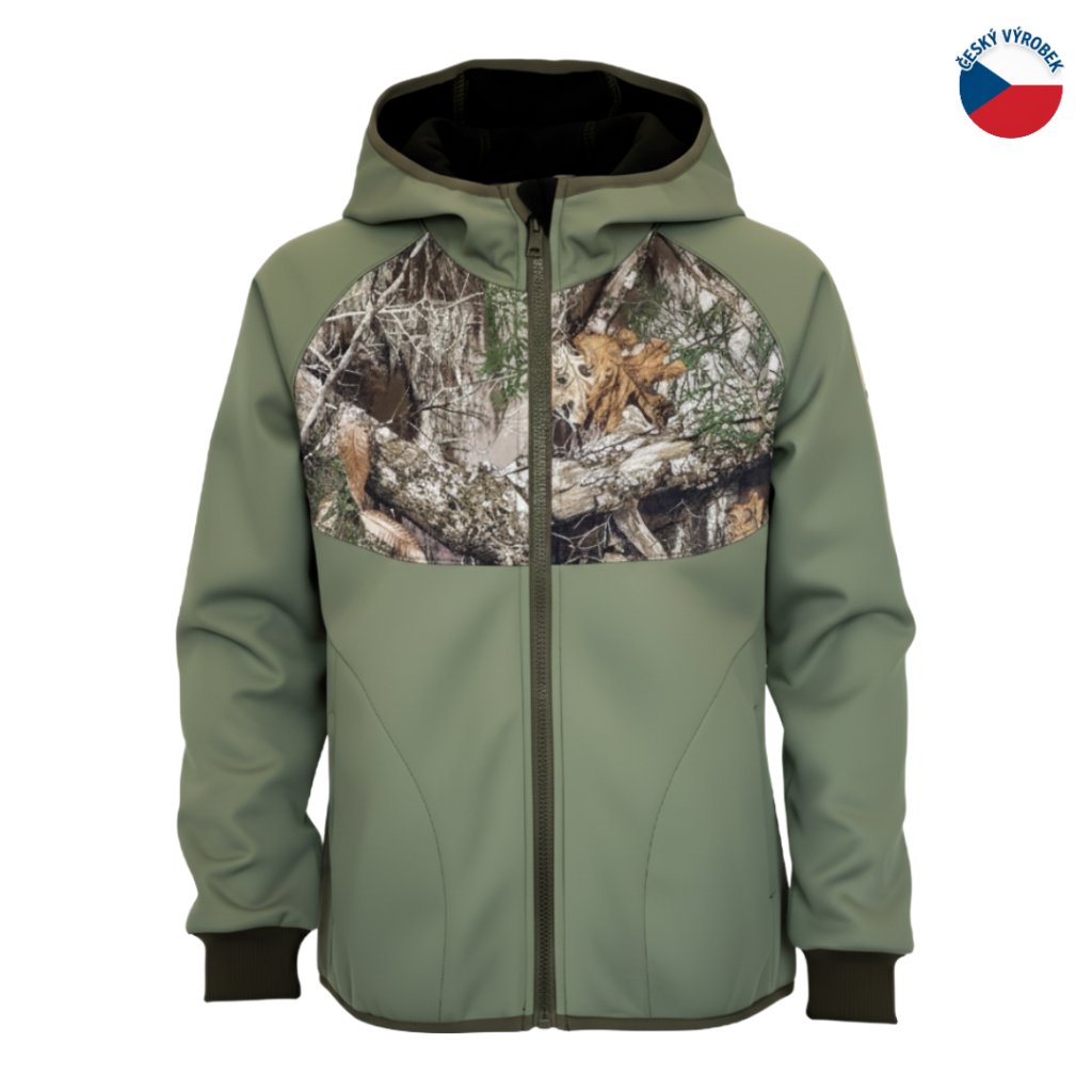 ZÁHOŘÍ Dětská softshellová bunda s kapucí - zelená s kamufláží