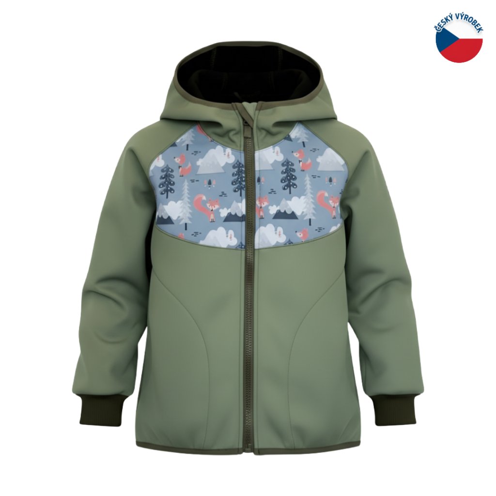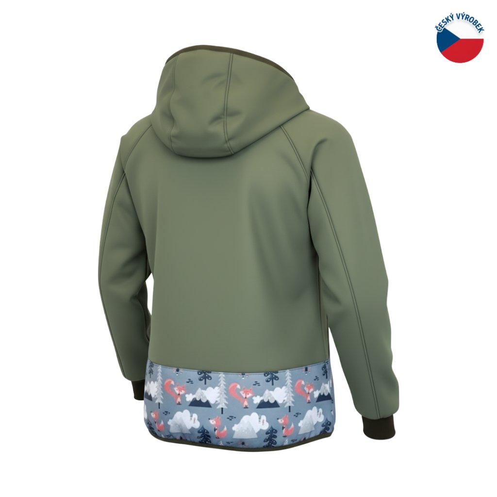ZÁHOŘÍ Dětská softshellová bunda s kapucí - zelená s liškou