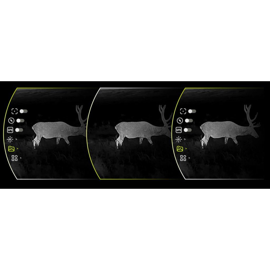 Termovize: White Hot, Black Hot, Iron Red, Alarm, Green Hot, Sepia Digitál: Colour, Black White, Green, Yellow, Auto |