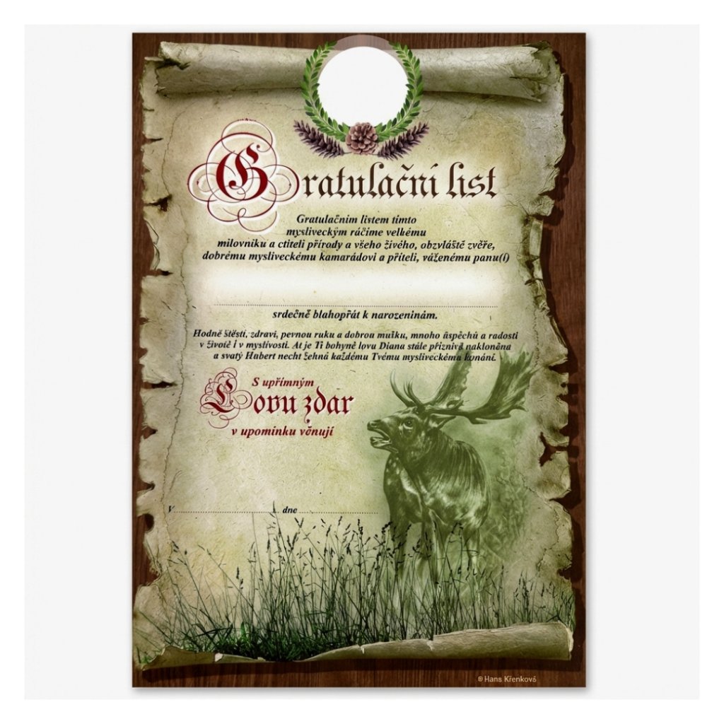 GRATULAČNÍ LIST k životnímu jubileu daněk troubící