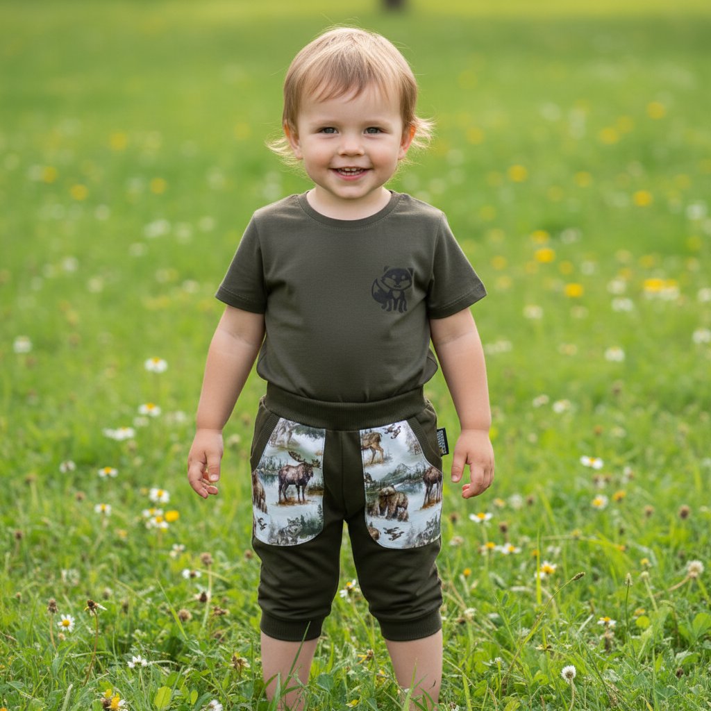 ZÁHOŘÍ Dětské bermudy - zelené se zvířátky
