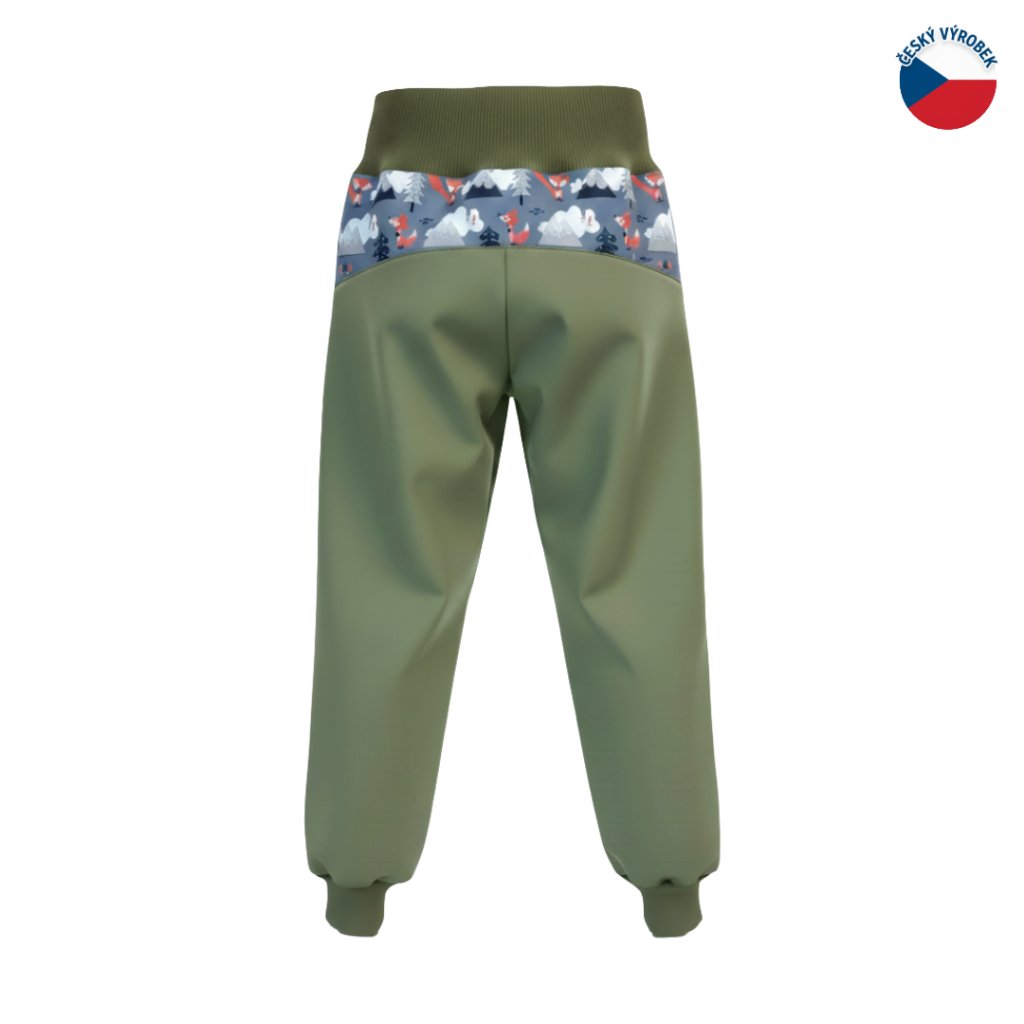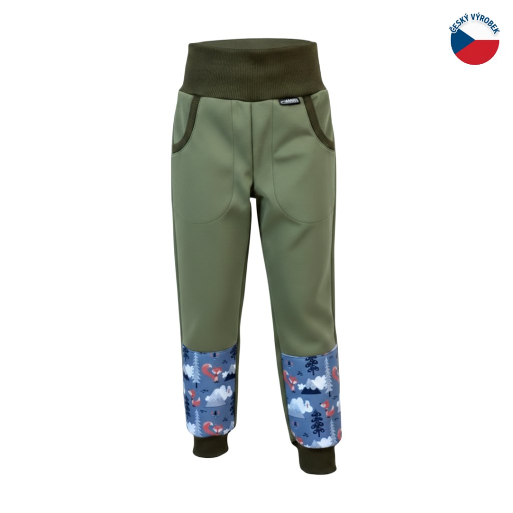 ZÁHOŘÍ Dětské softshellové kalhoty - zelené s liškou