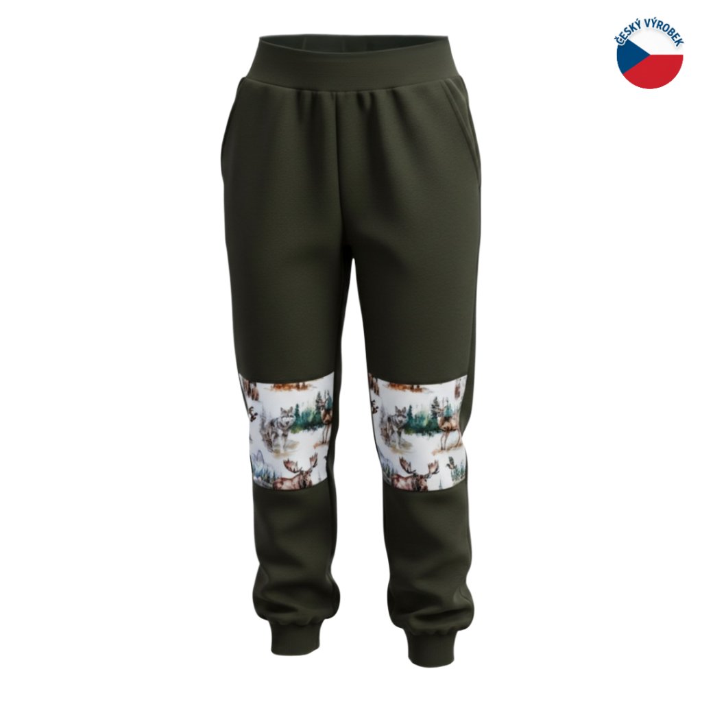 ZÁHOŘÍ Dětské tepláky - zelené se zvířátky