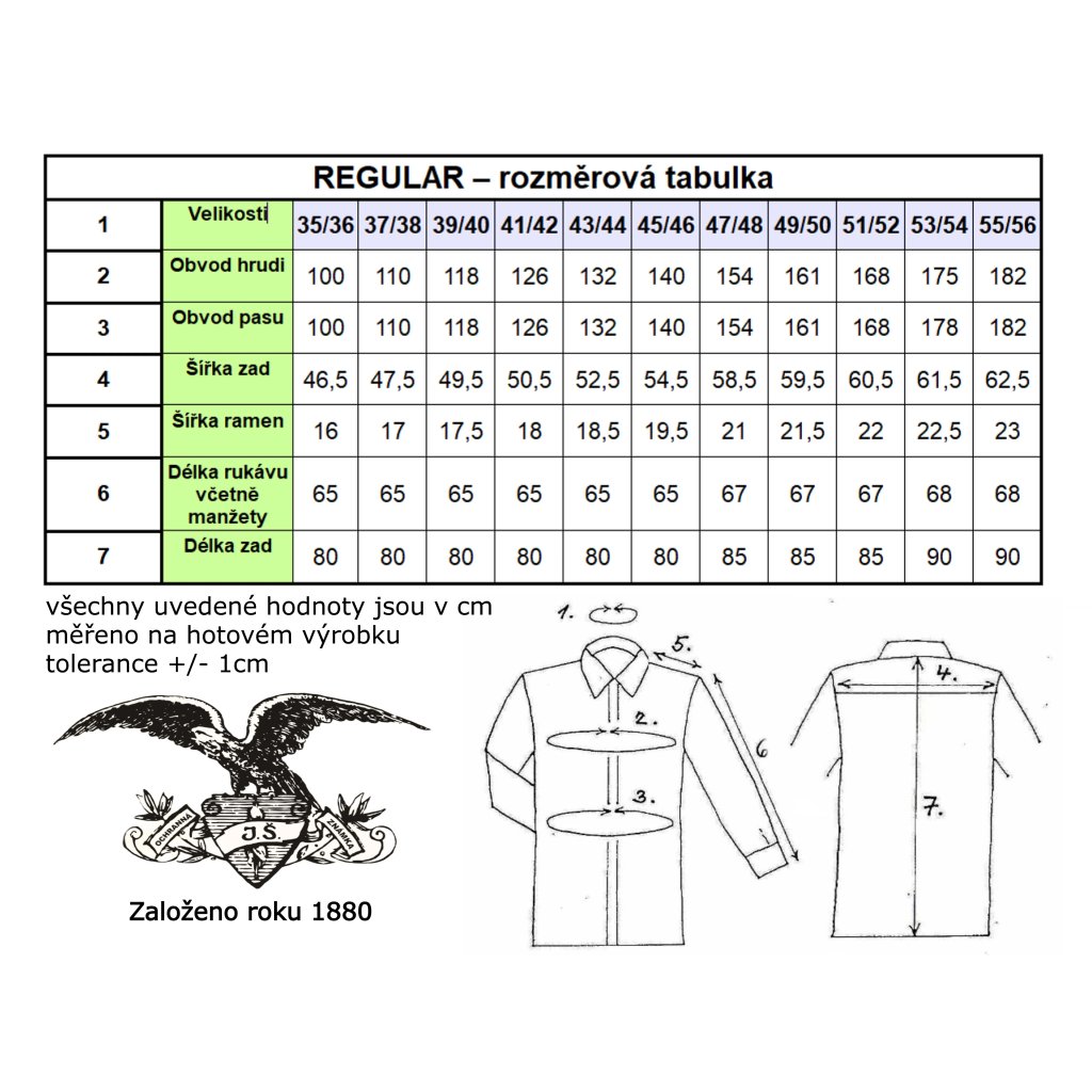 Košile má klasický rovný REGULAR střih, ozdobné poutko se zapnutím na knoflík a zaoblenou spodní obrubu.