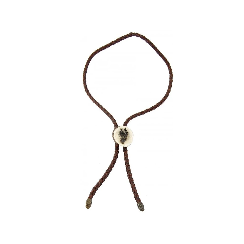 - kožený pletený řemínek, konce řemínků ukončeny šiškami