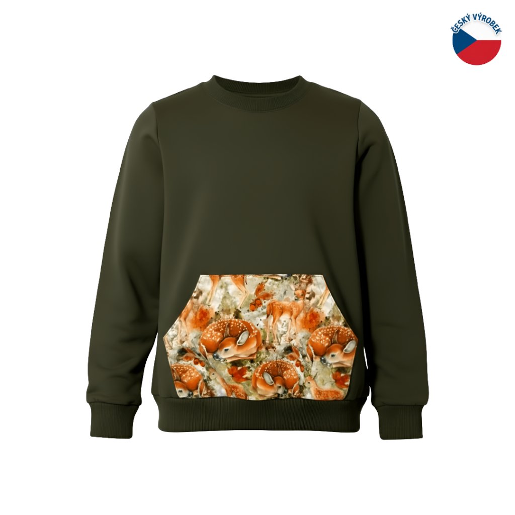 ZÁHOŘÍ Dětská mikina s kapsou - zelená se srnečkami