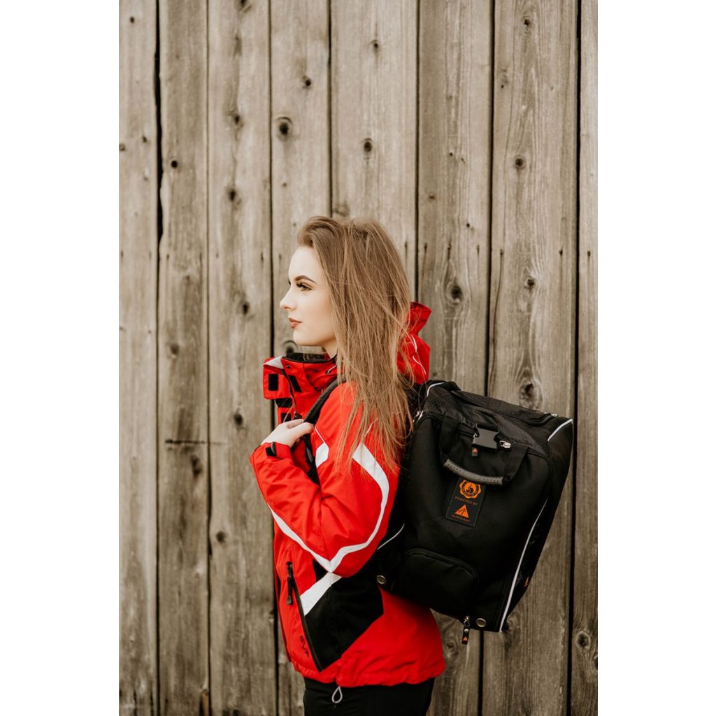 - hlavní komora + oddělená vnitřní komora pro helmu nebo rukavice, vnější kapsa pro doplňky
