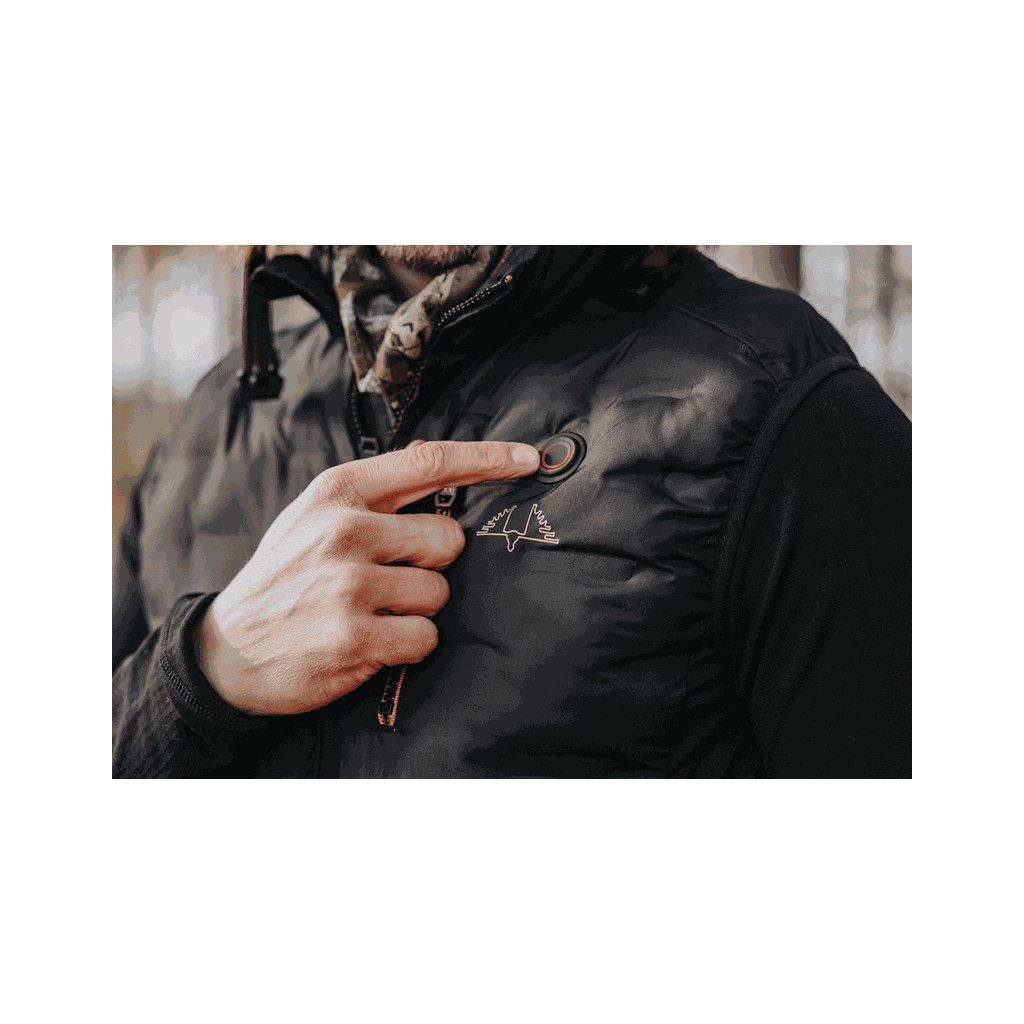 Doporučení: Vyhřívaná vesta je primárně určena jako druhá oděvní vrstva. Měla by být co nejblíže k Vašemu tělu. Pokud je to možné, na základní funkční vrstvu použijte pouze košili nebo fleecovou mikinu. Pro nejlepší funkci vyhřívané vesty zvolte velikost tak, aby těsně obepínala Vaše tělo.