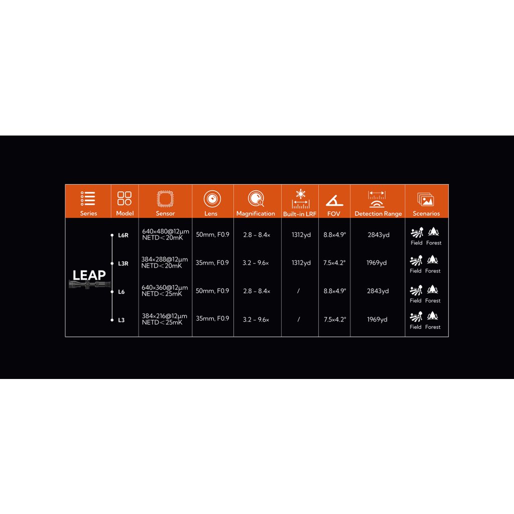 Řada termovizních puškohledů RIX LEAP nabízí kvalitní obraz, optické zvětšení displeje, dostatečnou výdrž akumulátoru na jedno nabití a funkce, na které jste zvyklí, ať už se jedná o pořízení snímků, nahrávání videa, automatické nahrávání po výstřelu, obraz v obraze (PIP), Wi-Fi nebo širokou škálu nastavení záměrné osnovy.