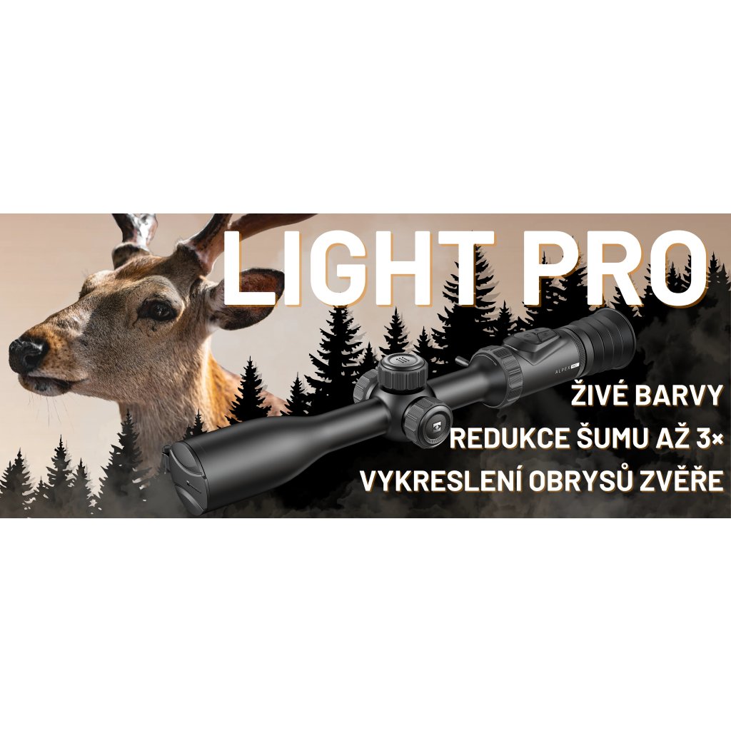 Detaily vám neuniknou ani za šera díky funkci Light Pro, která pomocí AI (umělé inteligence) zpracovává obraz tak, že je jeho světelnost porovnatelná se snížením clony na F0.9 a výrazně tak posouvá kvalitu obrazu ve zhoršených světelných podmínkách. Dalším benefitem je o zhruba 30 minut delší pozorování při soumraku v živých barvách a vysoce kontrastní, jasný obraz s až 3× potlačeným rušivým šumem. Funkce je aktivní v nočním a twilight režimu, kde jednoduše přečte obrysy zvěře a neunikne vám jediný pohyb.